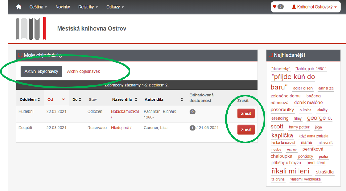 9. V oddíle MOJE OBJEDNÁVKY naleznete přehled všech aktivních objednávek. Máte zde také možnost objednávky zrušit. Je zde k nahlédnutí také Archiv objednávek.