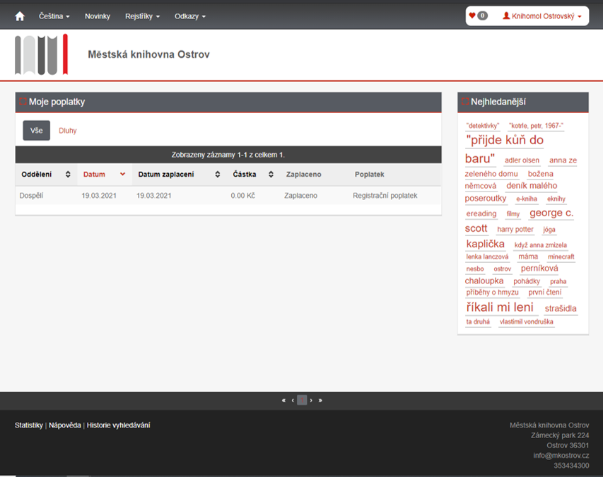 3. Nyní jste již přihlášen/-a a můžete nahlédnout do svého konta.