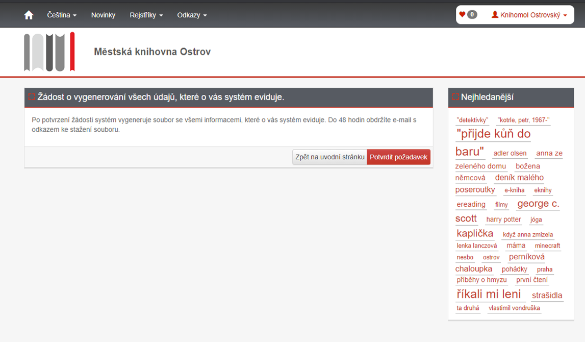 11. V oddíle ZÍSKÁNÍ OSOBNÍCH ÚDAJŮ máte možnost požádat o vygenerování všech údajů, které o vás systém eviduje.